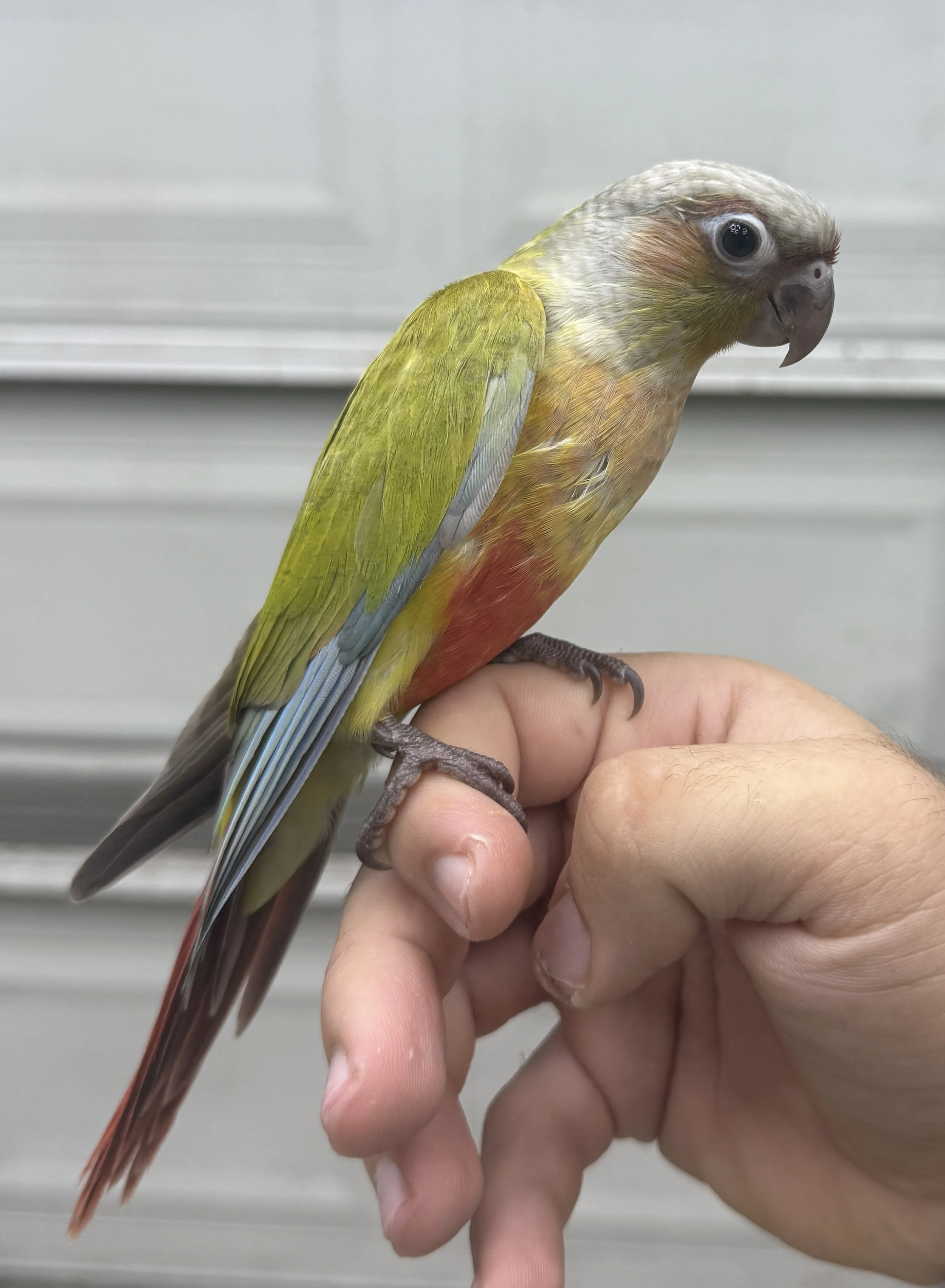 HIGHRED DILUTE YELLOWSIDED GREEN CHEEK CONURE
